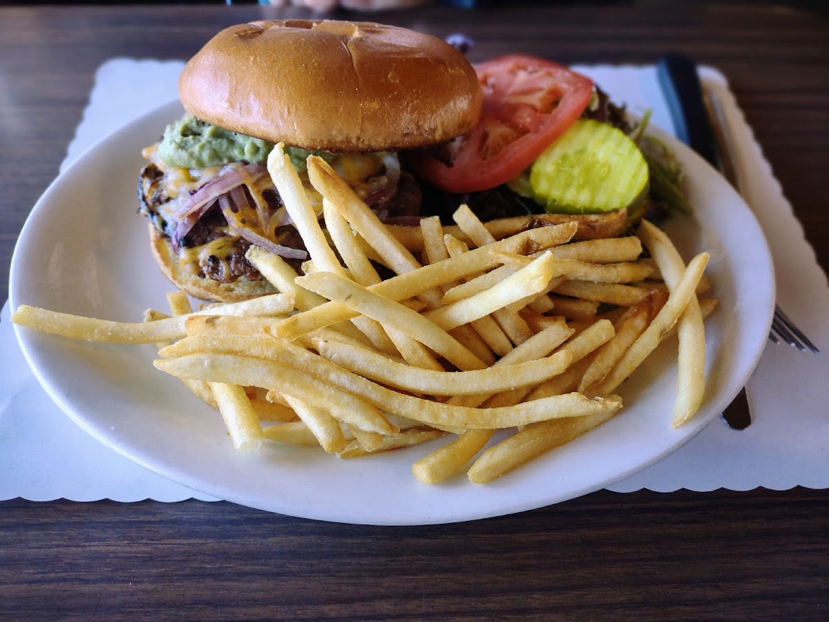 Delicious food. My husband ate here and got the the fireman burger 17 years ago and loved it so much he came back for it again said it was still so very good. The cafe was very clean , and everyone was so friendly. We look forward to coming again sometime.